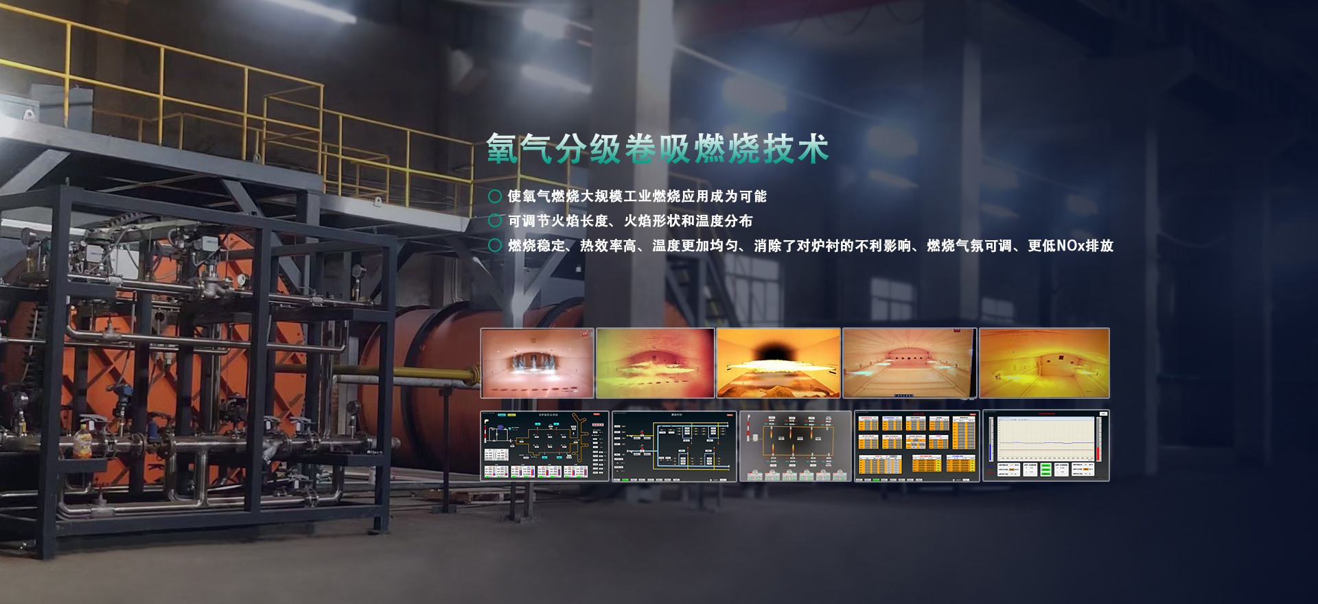 提供方案:成套熱能解決方案。高溫領(lǐng)域,采用全氧或富氧燃燒系統(tǒng),包含全氧燃燒器、燃?xì)?氧氣管路系統(tǒng)以及自動(dòng)化控制系統(tǒng)